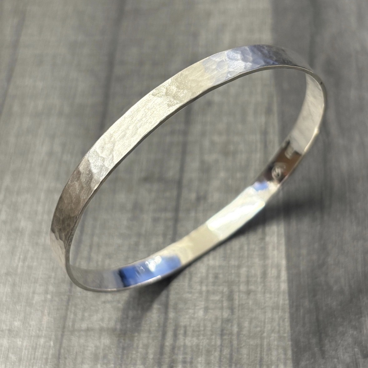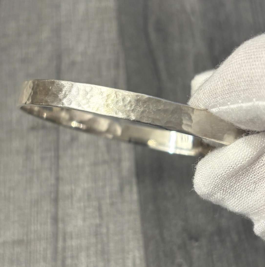 £125.00Hammered solid Sterling Silver bangle with a 6mm diameter. -