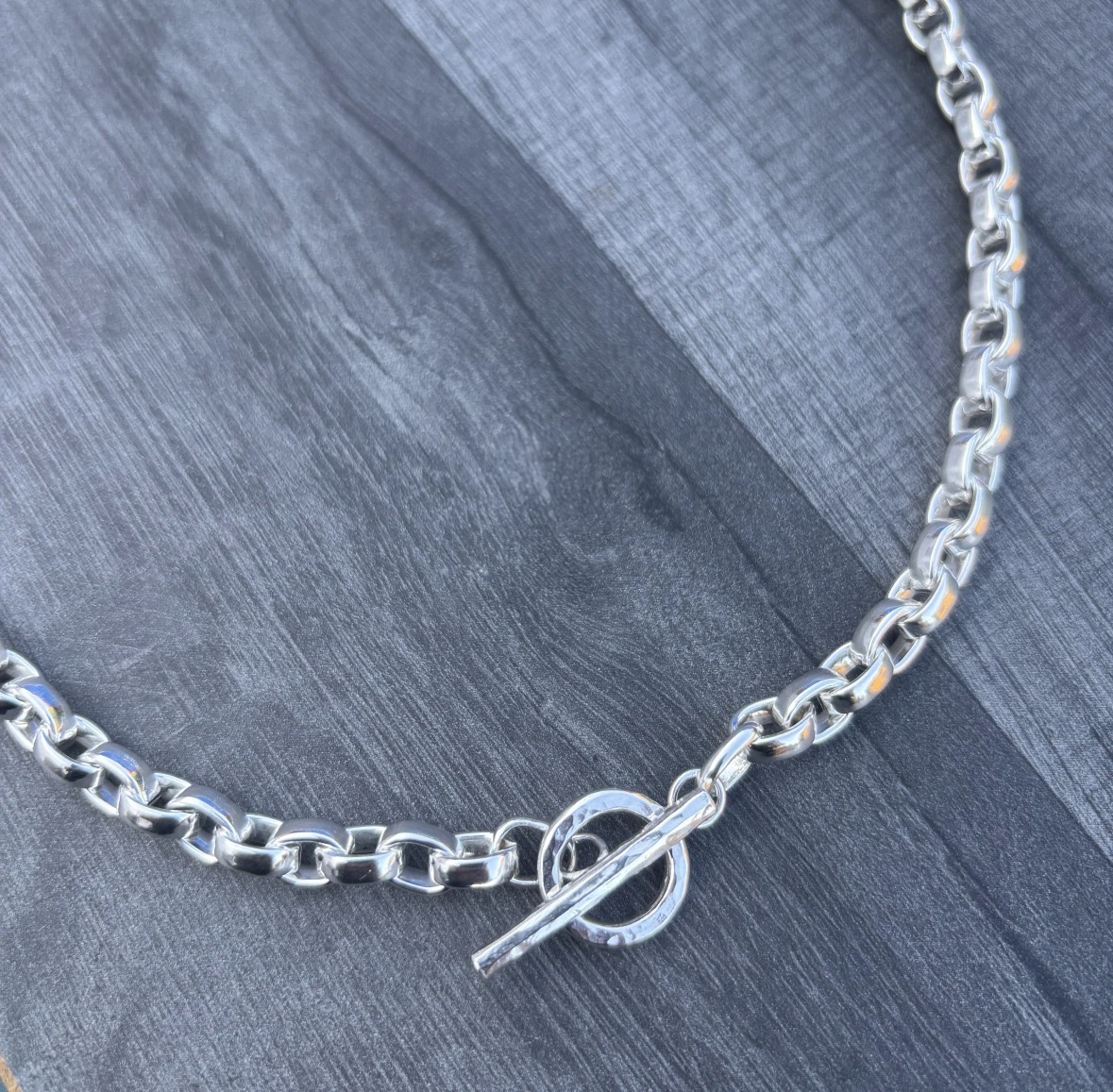 Chunky Fob Necklace, silver t bar necklace, unisex chunky chain, silver toggle chain, silver t bar necklace, chunky chain,