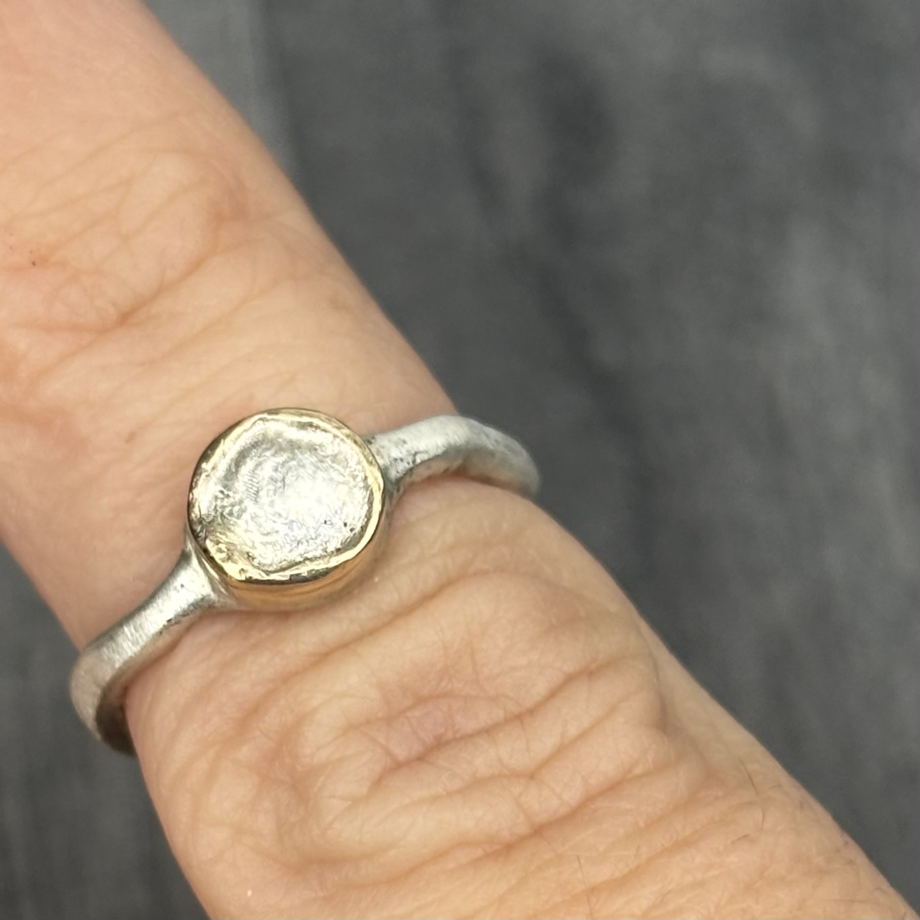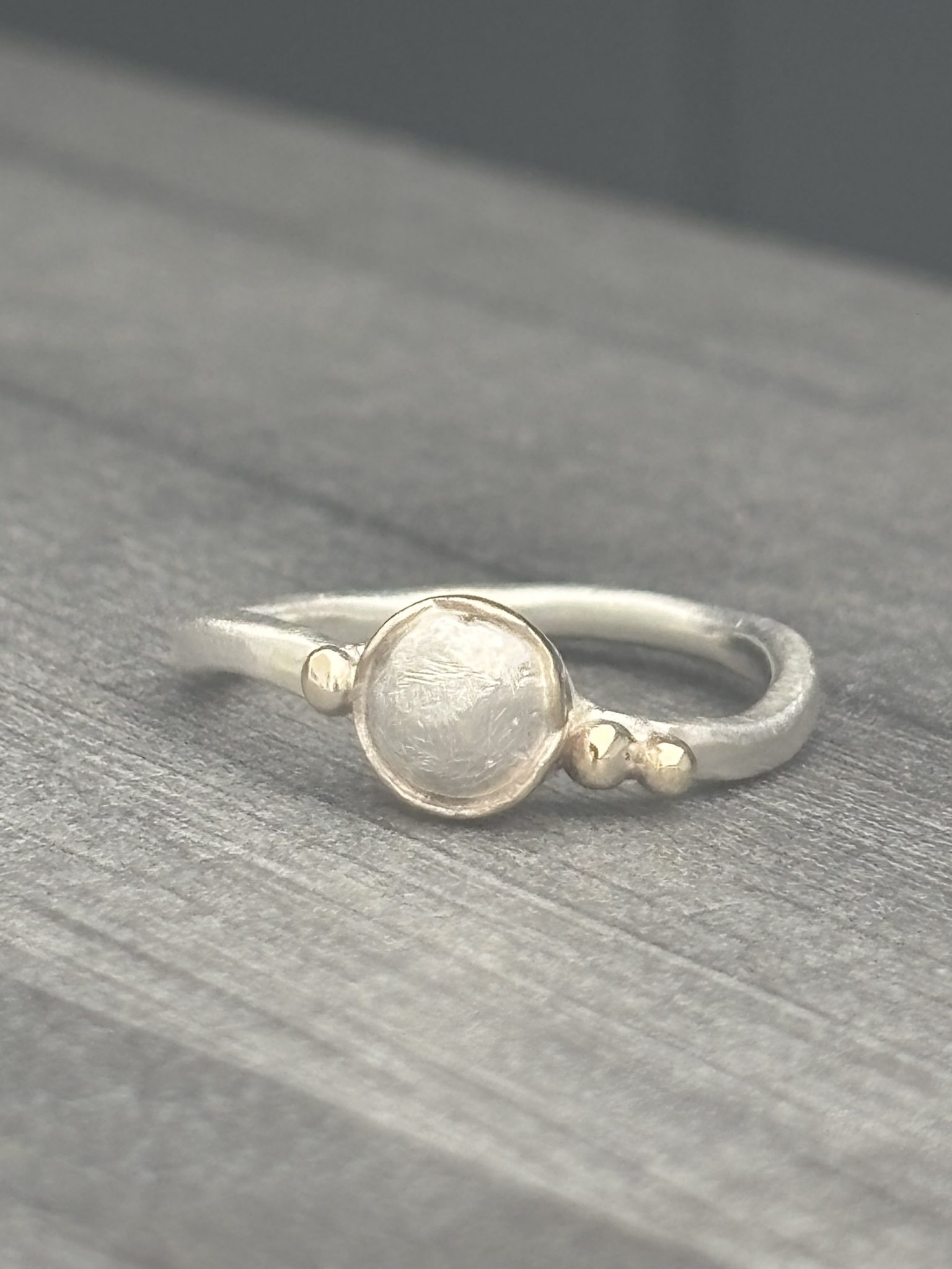Pebble Ring with gold bezel.