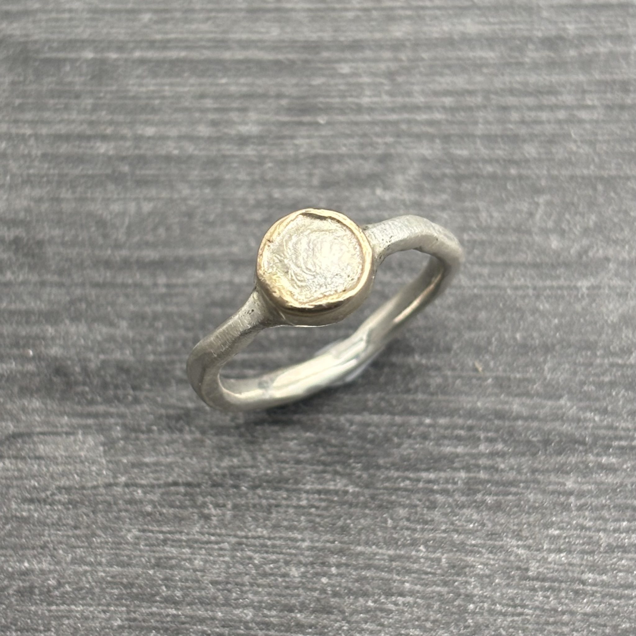 £72.00Pebble Ring This Sterling Silver and 9ct gold ring has an organic feel. -
