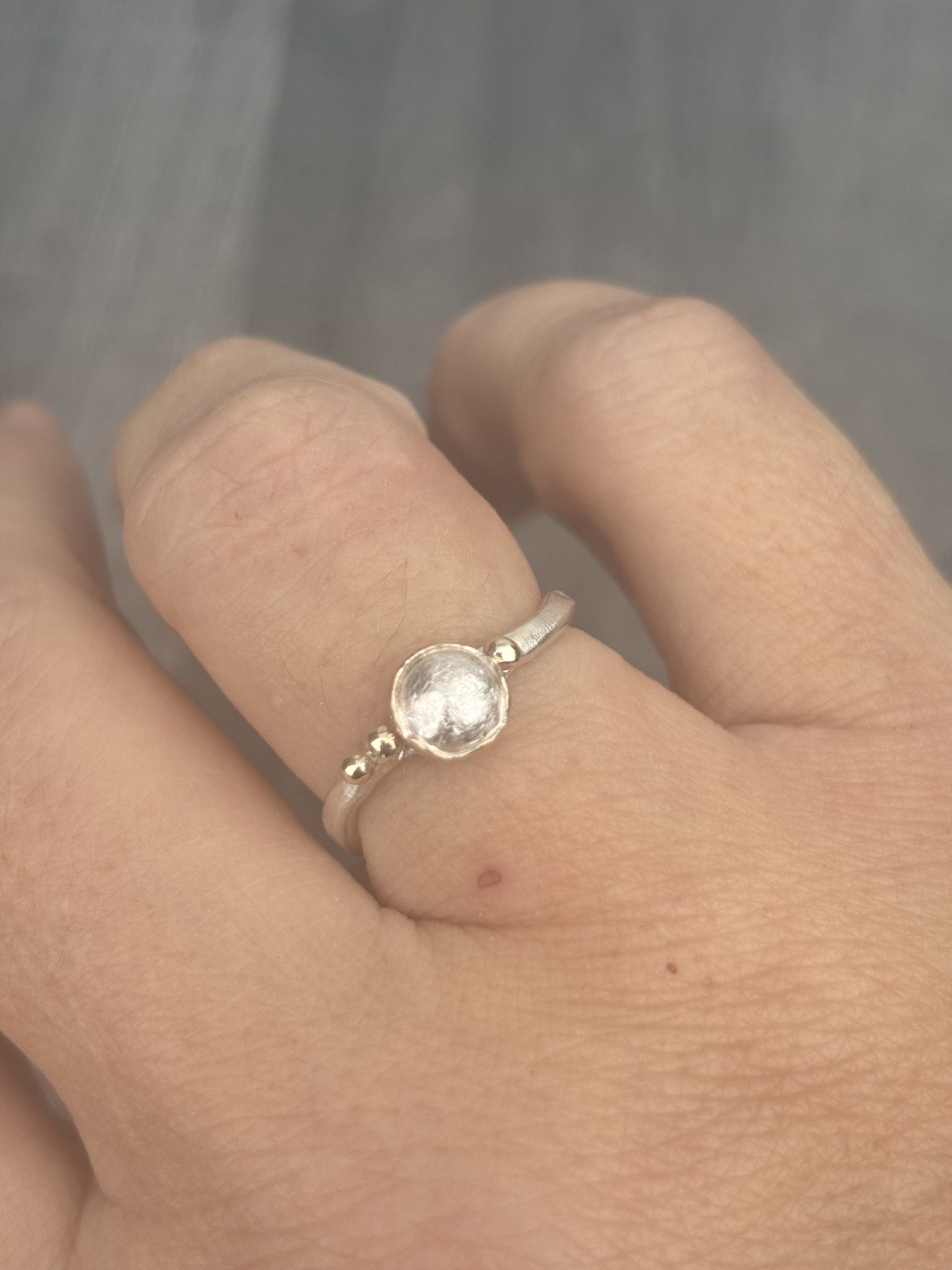 Sterling Silver Pebble Ring with 9ct yellow gold bubbles.