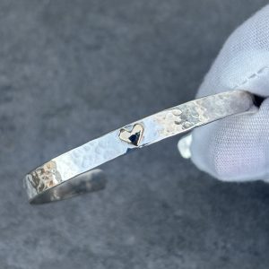 Hammered Sterling Silver bangle with solid 9ct yellow gold heart.