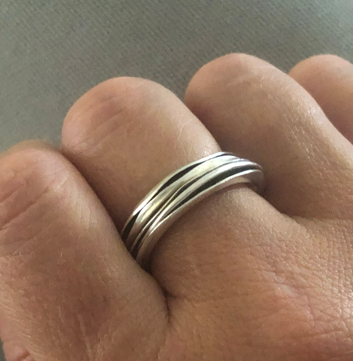 Sterling silver freeform stack rings.