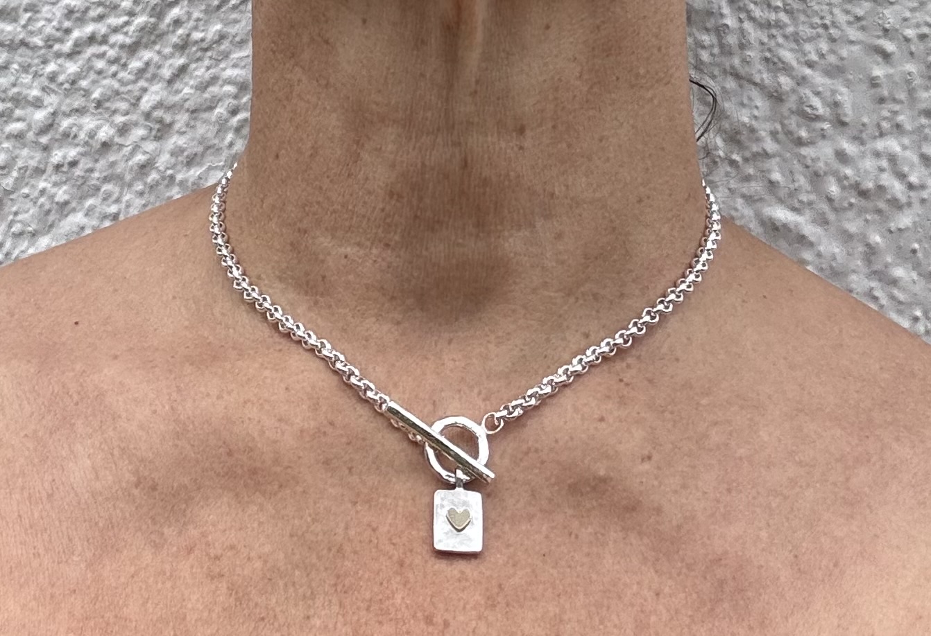 Sterling Silver Fob Necklace with Gold Heart charm.